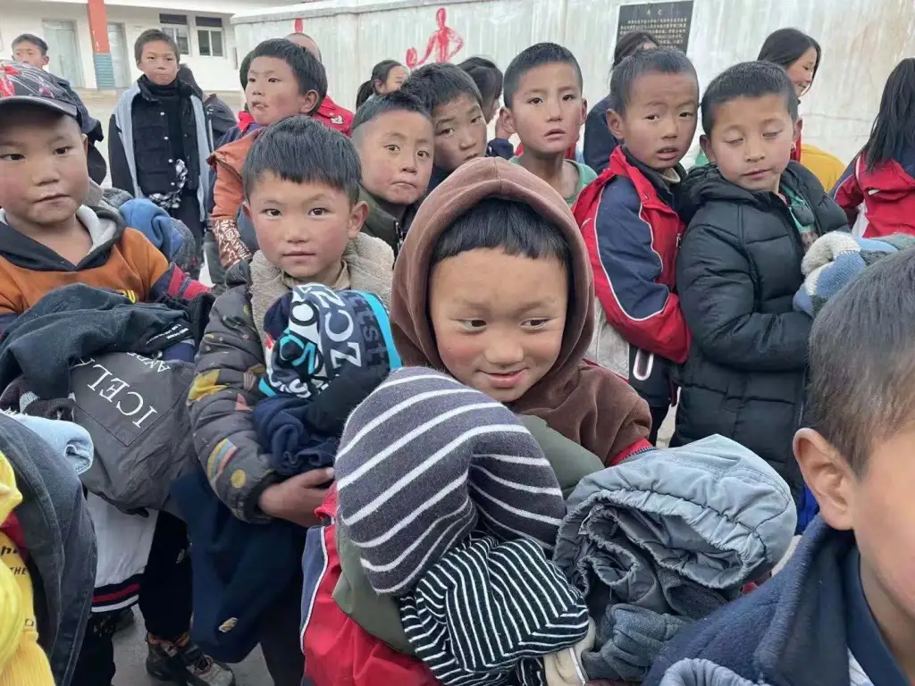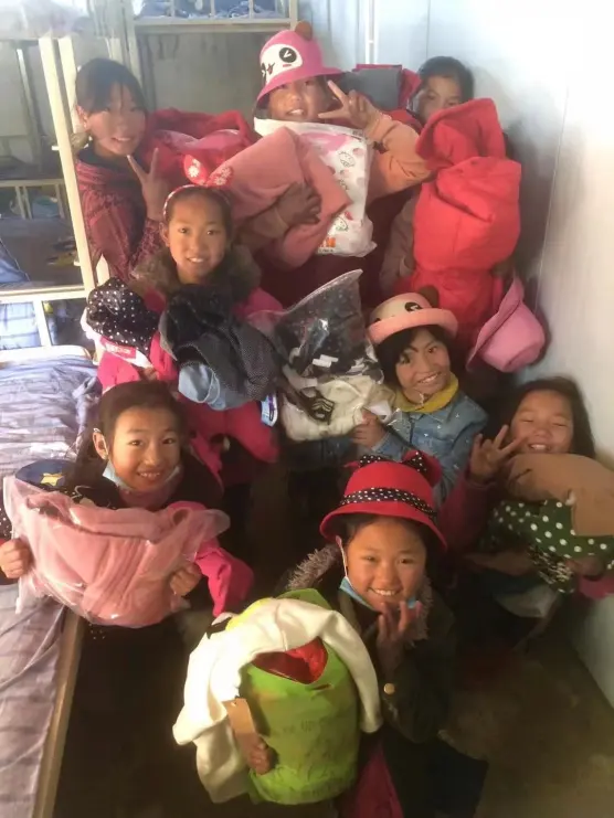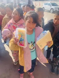 Children in Da Liang Shan, China receive items from Firewood Collecting Volunteer team